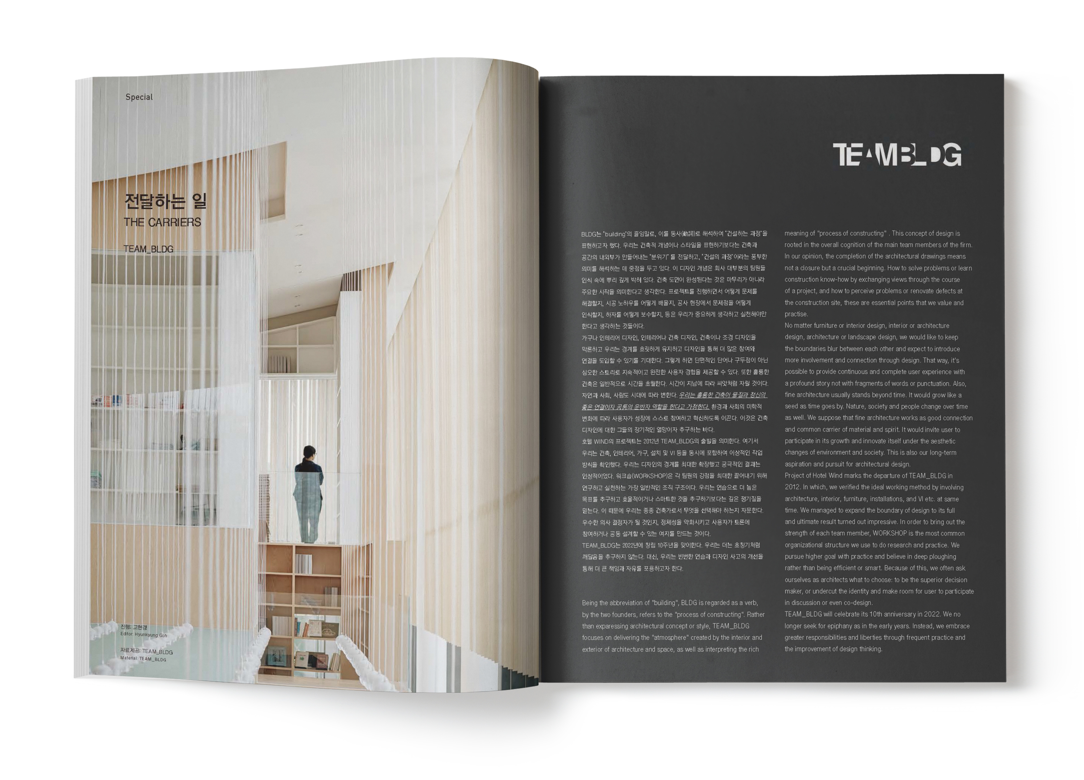 The Architect Special of TEAM_BLDG was published in the March 2022 issue of ARCHITECTURE&CULTURE, a famous architectural magazine in South Korea, and「THE FIELD」was featured on the cover of this issue.