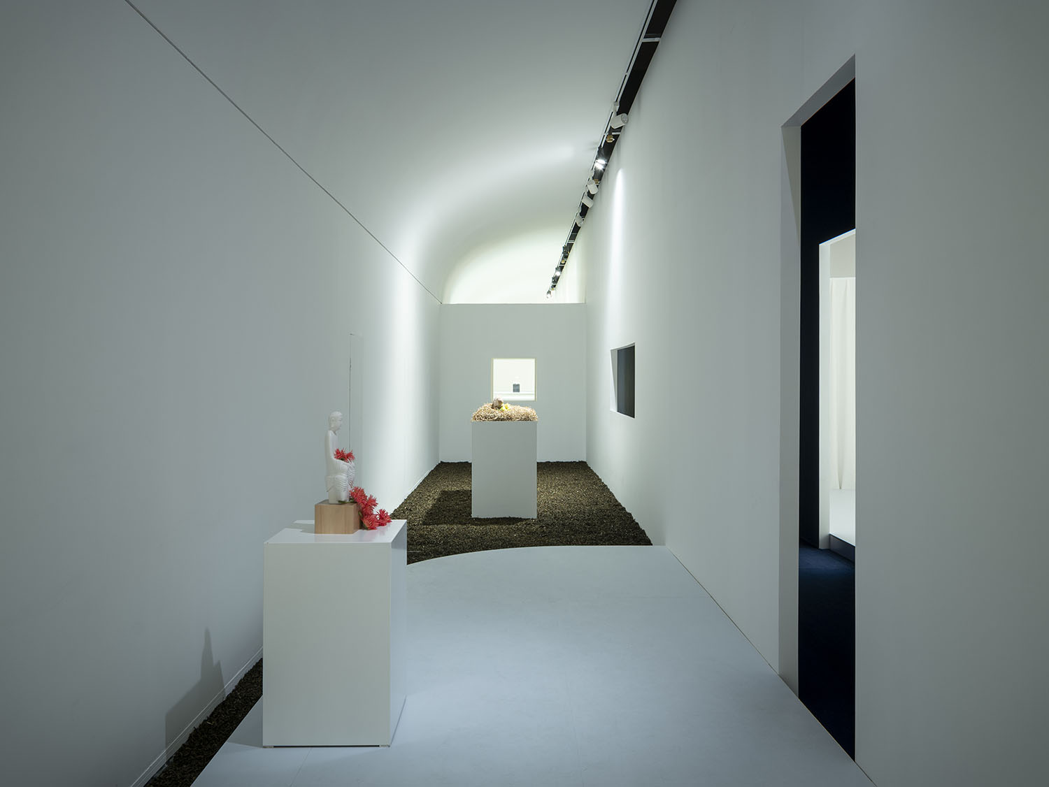 This exhibition is located in the Hanshan Art Museum in Suzhou. We are asked by the Buddha artist Jiang Sheng to design the exhibition space for his exhibition entitled “Inflorescence”.