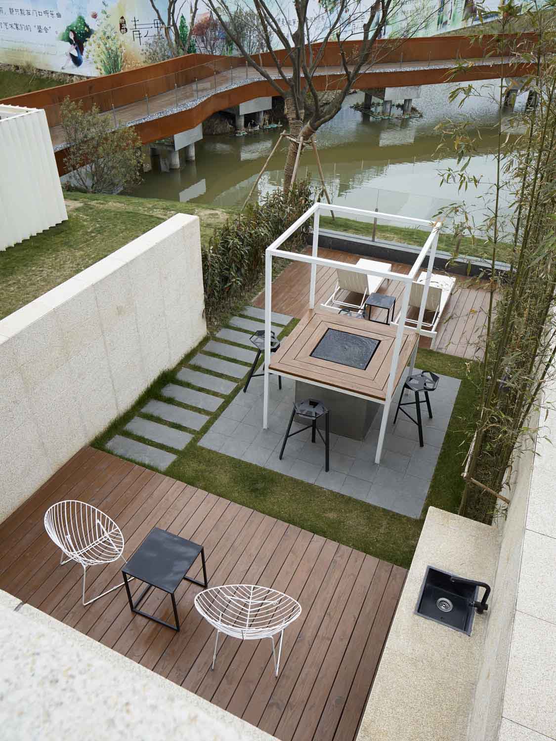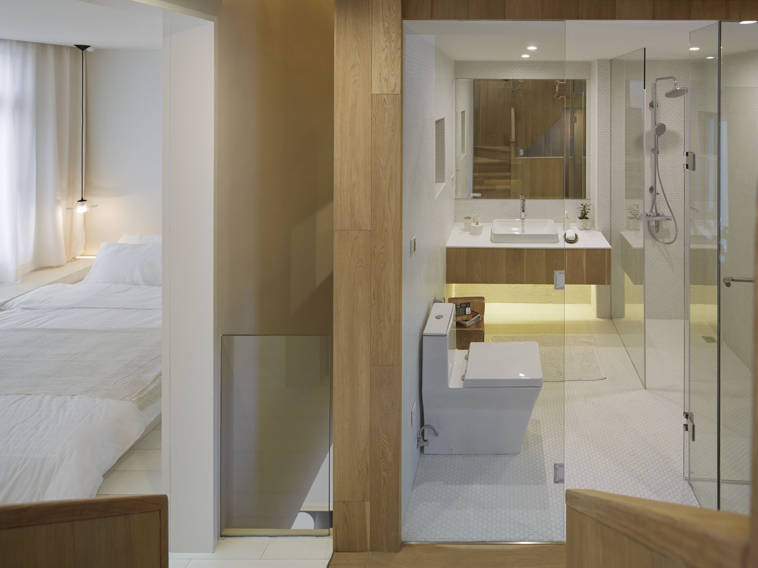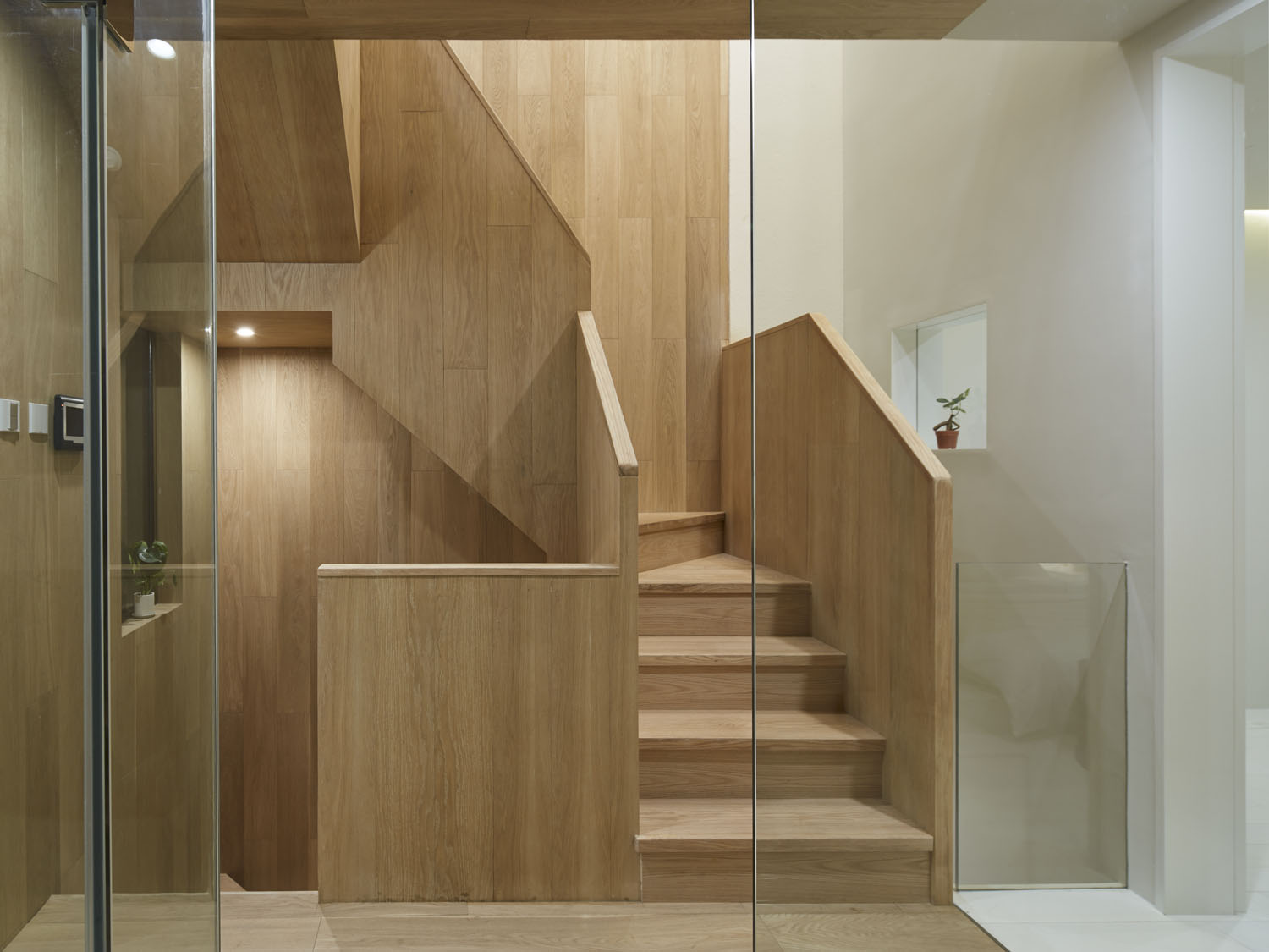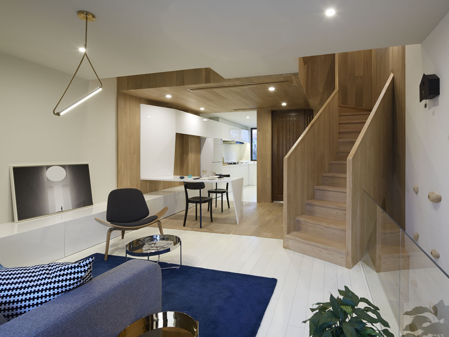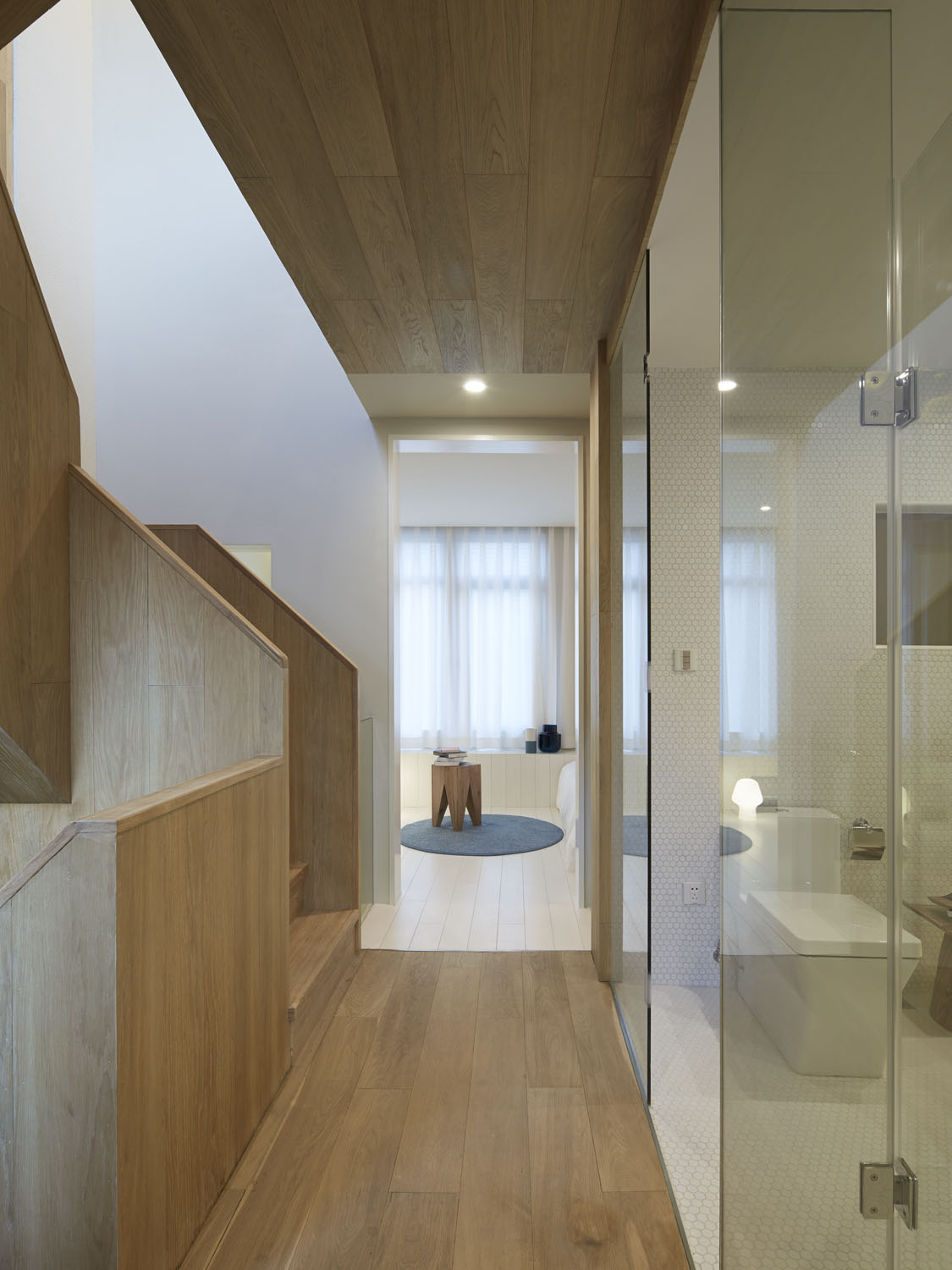 We chose white oak as the main material of the inside space, although the outer space has wood, iron mesh, paint and other materials, but all unified into white, so that users can fully experience the feeling of shuttling between the two spaces.