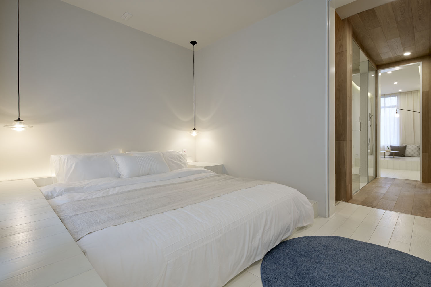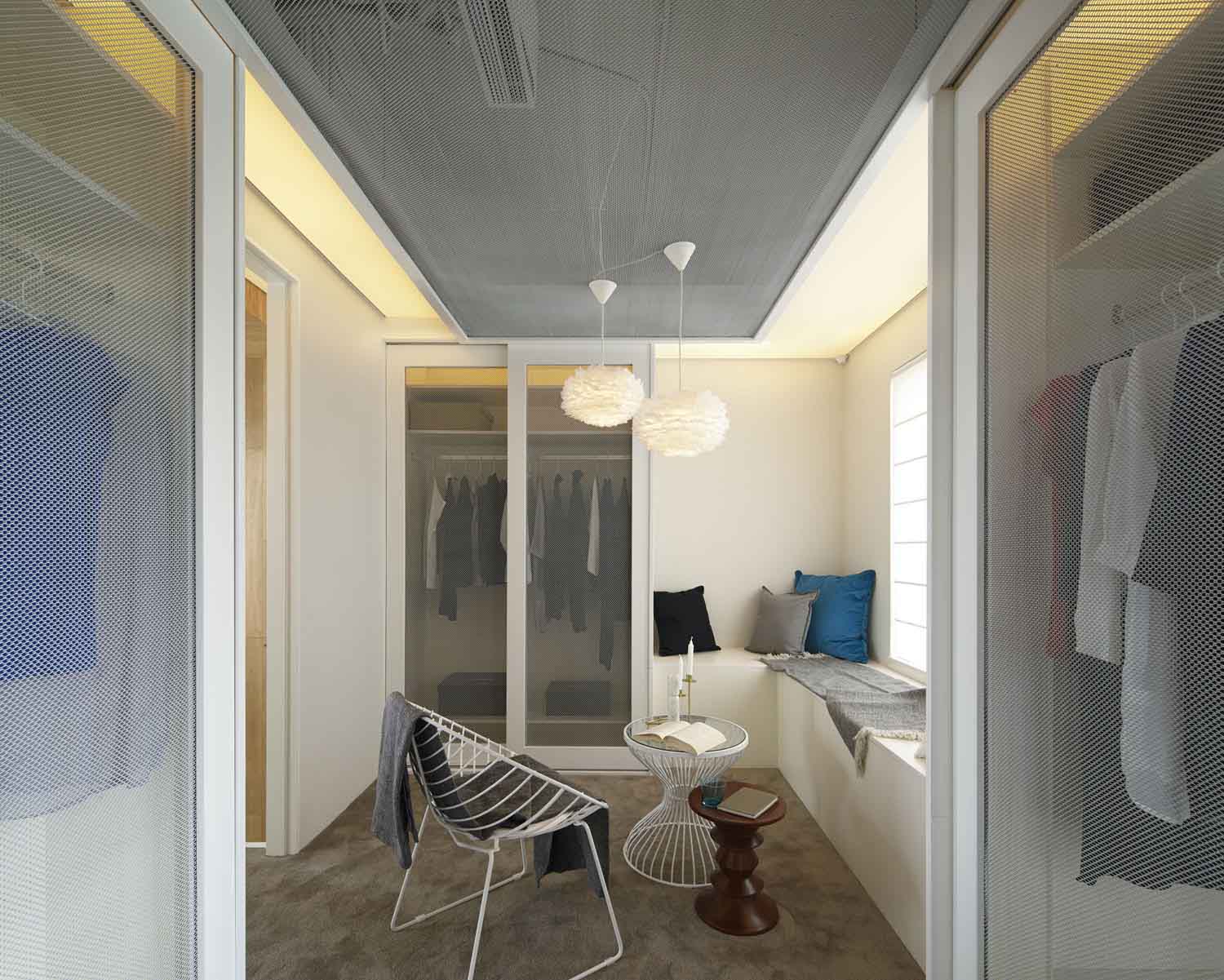 里空间我们选择使用白橡木为主要材质,外空间虽然有着木材、铁网、涂料等多种材质,但全部统一成白色,让使用者能够充分体验到不断在两个空间中穿梭的感觉。