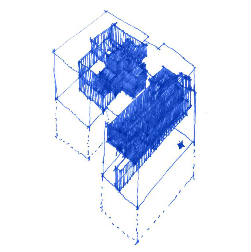 以此为出发点,我们借鉴了中国传统内庭式建筑的层次关系,并将其反向,提出了“内实、中虚、外开”的设计概念。