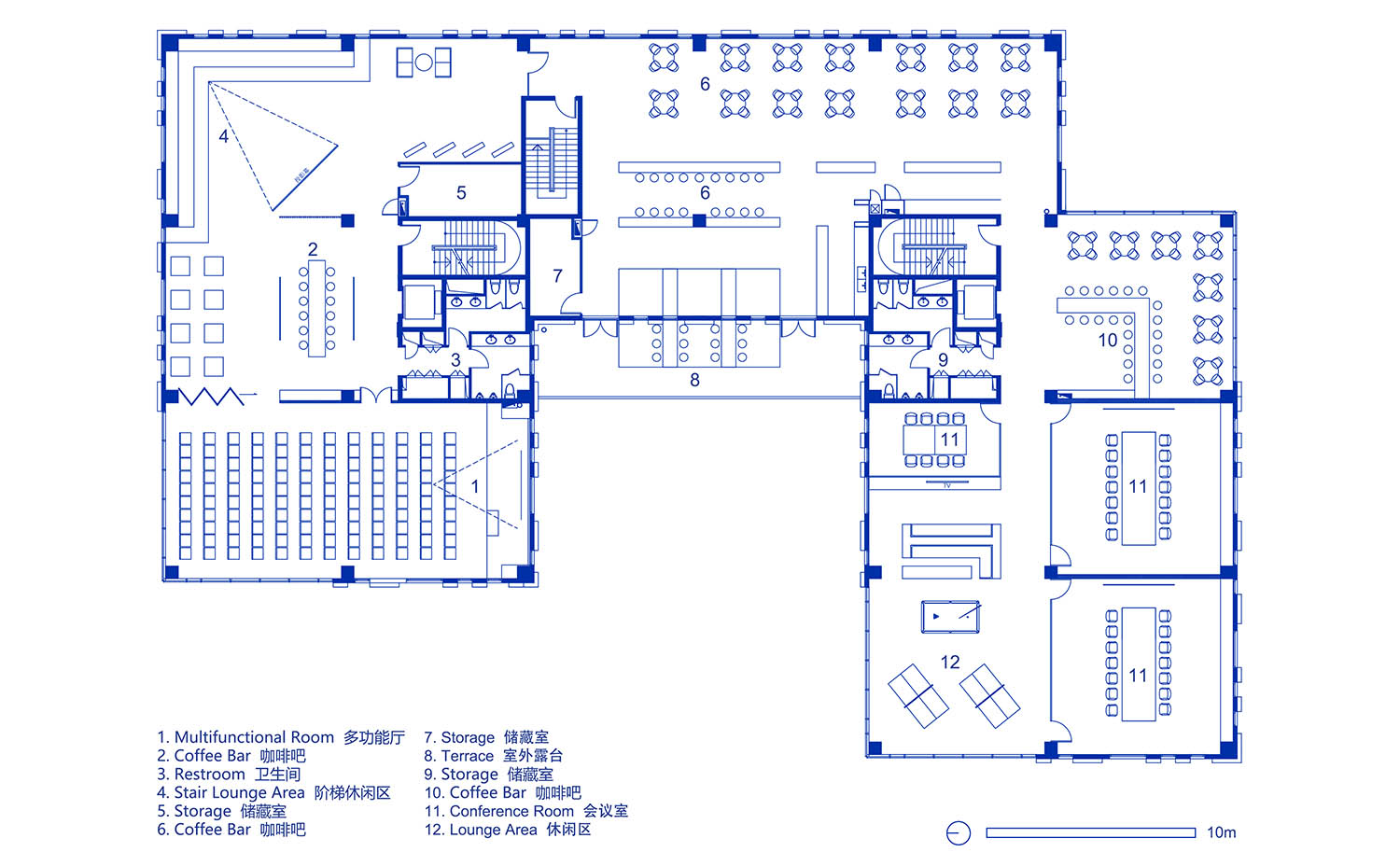 The fourth floor focuses on leisure activities and meetings, so the designer continues to zone the office area in line with texture to enhance mutual communication. Also, several variable spaces are expanded for Party A's group gatherings.
