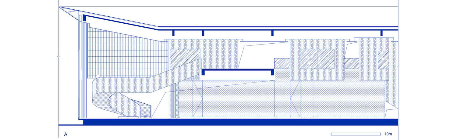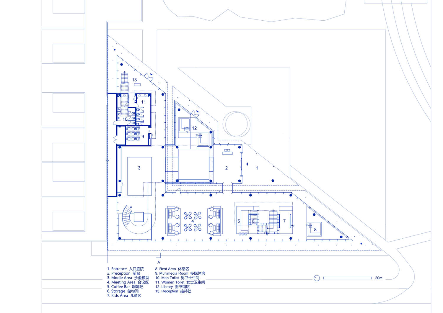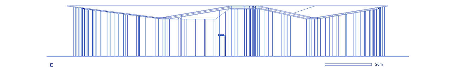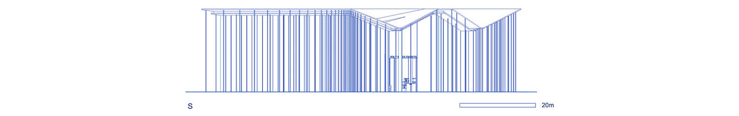 As Hakka buildings are located in the nature, this double-story building has a close relationship to the surrounding environment: the silhouette of the triangular roof overshadows the ground like a mountain while the metal columns supporting the triangular roof connect with the outdoor trees like a forest. Waterscape around the site smoothens the strict geometries. Large areas of glazing and surrounding green space redefines the relationship between the building and the environment. Elegant roofs, clusters of poles, full height curtain walls: a poem of mountains, trees and water.