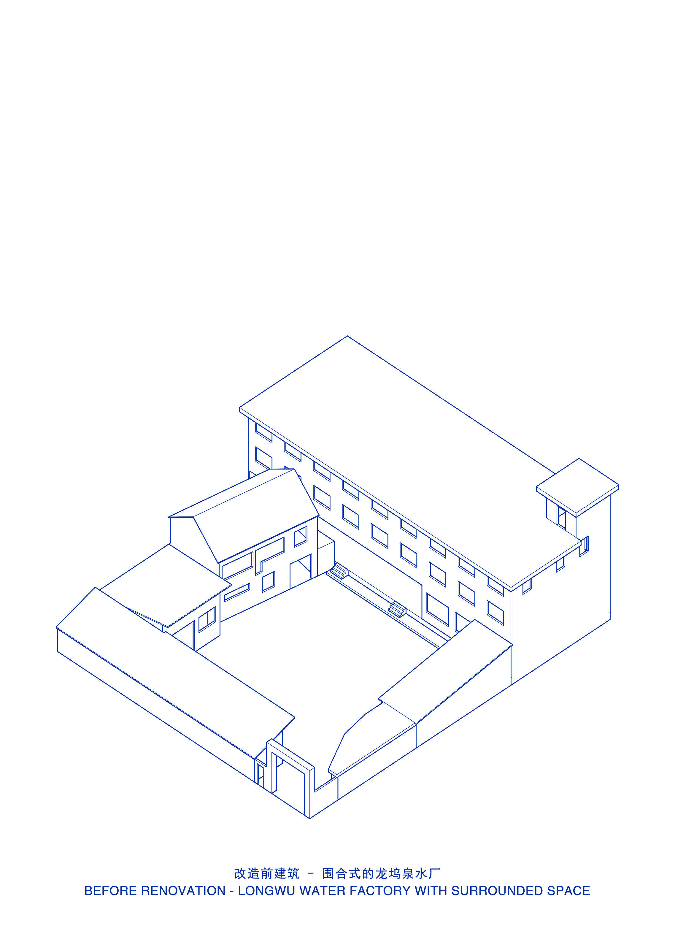 2021年夏天,TEAM_BLDG间筑设计接到了来自杭州市青山村的项目委托,将已经废置数年的龙坞泉水厂改造成为青山青年社——容纳"住宿、办公、展览、商店"等功能,为去到青山村进行短期休假式办公、驻村创业,度假的人们提供一处"共享居住&共享办公(Co-Living& Co-Working)"的建筑。此次改造不仅仅希望解决旧建筑的现有问题,更是希望通过空间加深人与人,人与村庄之间的紧密关系,使新老村民都可以参与其中,分享这座建筑。