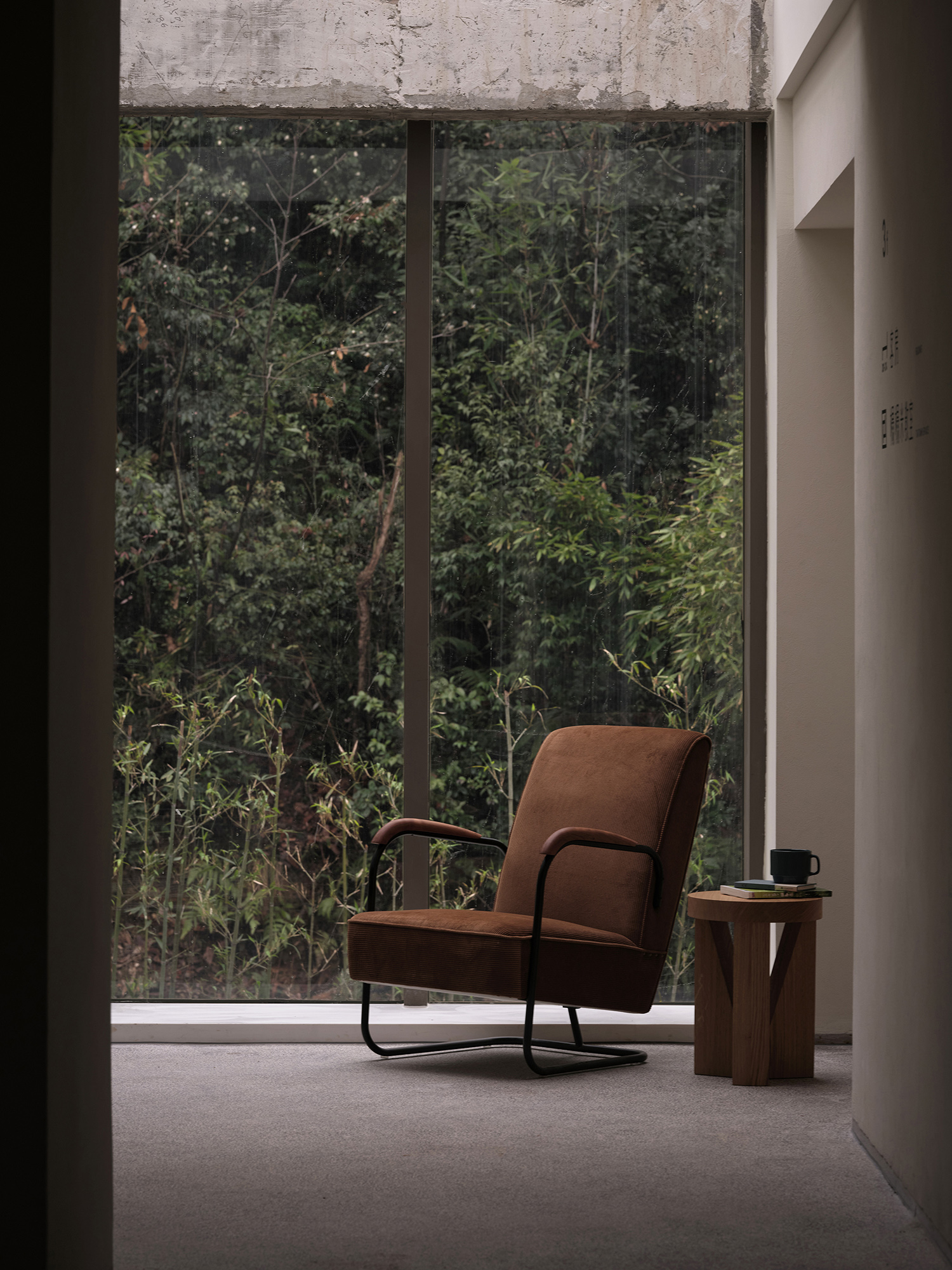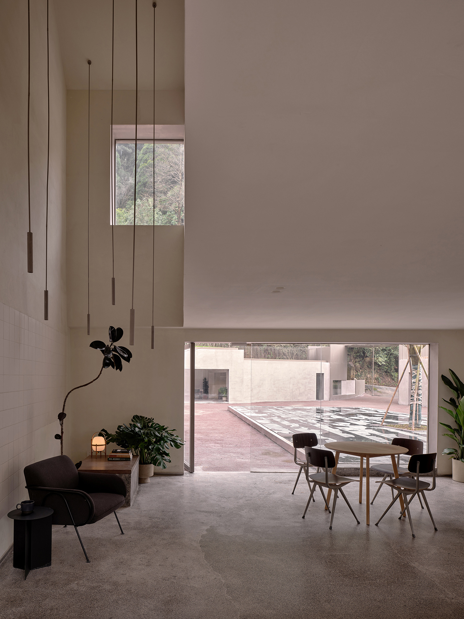 With the exception of the 23 guest rooms on the second and third floors of the main building, which are the highest level, we organize the users according to the level of privacy needs, and all public places are allowed a certain amount of freedom in accordance. For instance, the main building's first floor houses a public exhibition hall and reading room in addition to a shared office space that is accessible via card swipe. The only thing separating the two sections visually is a wall of greenery. With the exception of the two conference rooms, the common office space is an open, continuous area. The site is simply separated by the rising and lowering of the ground. There are no constraints on the precise functions of each region, so the users can alter the layout on their own.
