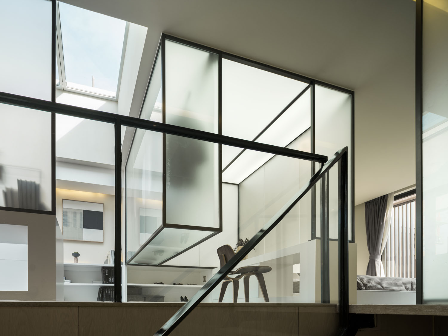 这些空间虽然强调私密性,但考虑到整个空间的尺度,我们还是采用了“隔而不断”的设计手法。无论是半透明材质的使用,还是屏风一般的隔墙形态,都能够让身处其中的居住者感到各个空间之间的连接感。